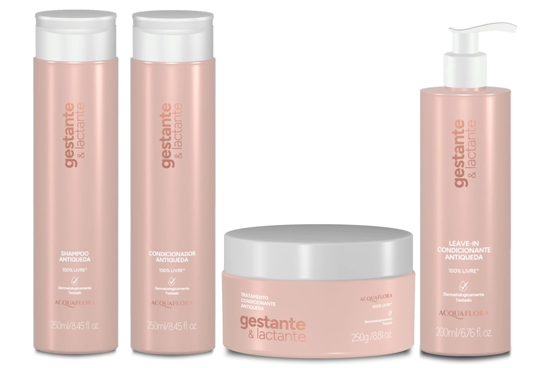Condicionador que promove desembaraço imediato, desenvolvido especialmente para gestantes e lactantes que buscam um tratamento antiqueda eficaz e seguro para as possíveis perdas dos fios que podem ocorrer no final da gestação e durante a amamentação. Sua fórmula contém ingredientes de origem natural, como Microalgas do Tahiti + Extrato de Alecrim + Aminoácidos que reduzem a queda favorecendo o crescimento de novos fios, fortalece e trata o cabelo conferindo brilho e maciez. Microalgas do Tahiti obtidas por Blue Biotechnology ( processo sustentável e mais eficiente na extração dos ativos ).