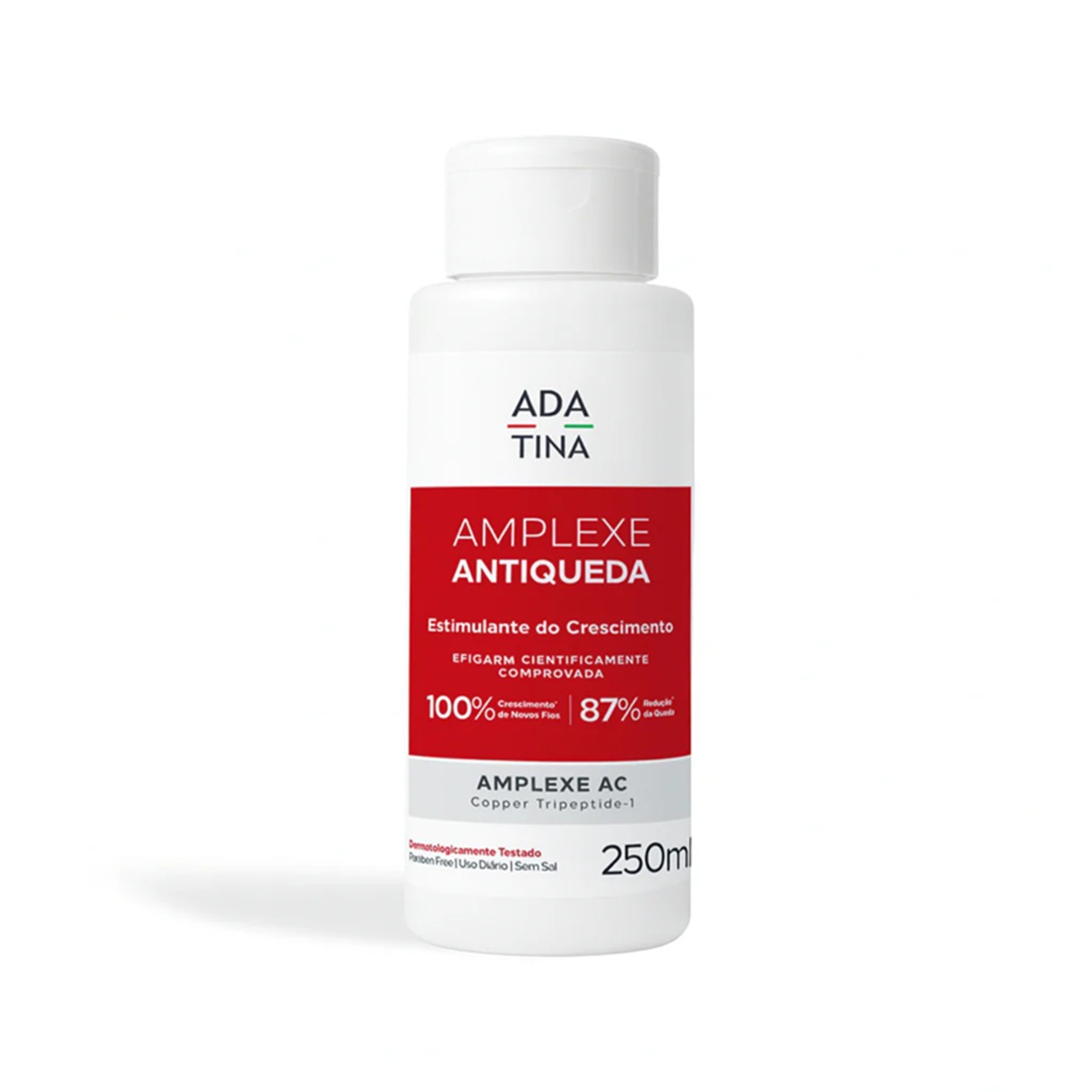 Estudos clínicos e tricogramas realizados com o uso de Amplexe Antiqueda Tripla Ação Pró-Crescimento 250ml associado à Amplexe Loção demonstraram: