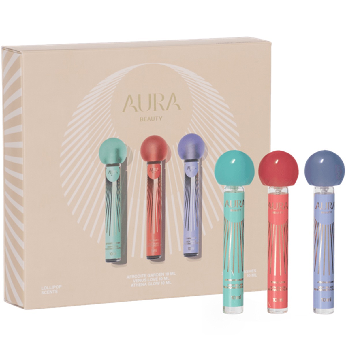 Aura Beauty apresenta o coffret Lollipop Scents, um tributo às nossas três deusas em versão miniatura, transformadas em pequenas varinhas de brilho e fragrância.