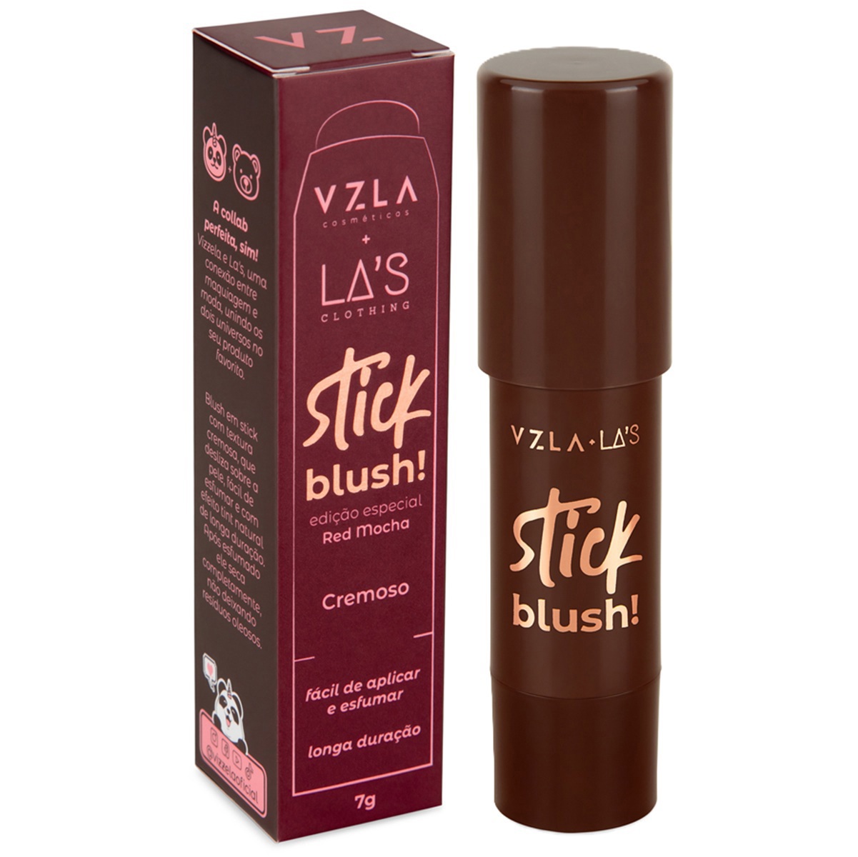 blush stick cremoso fácil de aplicar e esfumar collab vizzela + la’s edição especial red mocha – marrom avermelhado longa duração vegano dermatologicamante testado cruelty free