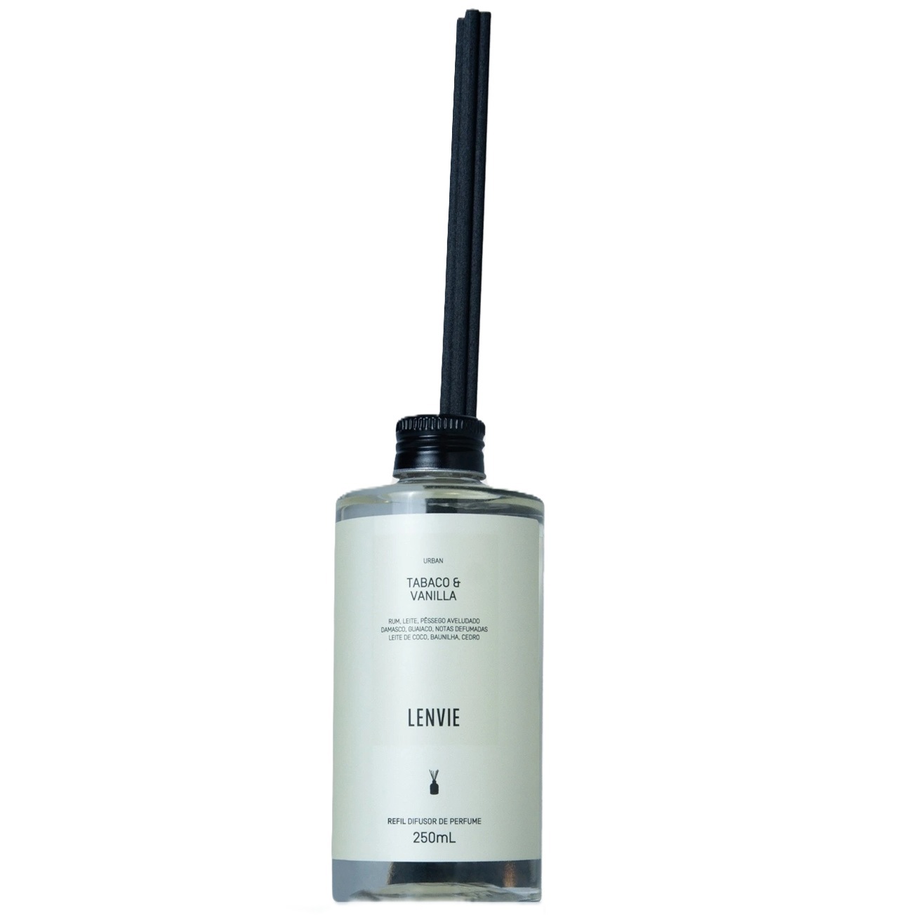 O Refil Difusor de Perfume Tabaco & Vanilla 250ml, ideal para a reposição do líquido no frasco do difusor, sendo uma opção prática e sustentável.