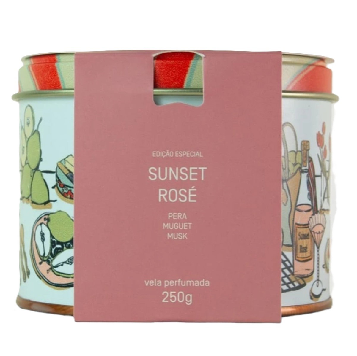 Interpretada e criada pela designer e ilustradora Isabela Bueno, a edição especial da Vela Perfumada Lata Sunset Rosé 250g traz uma ilustração inspirada em um fim de tarde dourado. Uma cena leve e sensorial, que evoca o clima de um piquenique cercado por aromas florais, o frescor suave da pêra e a luz do pôr do sol. Um momento em que o tempo desacelera e os sentidos despertam com delicadeza.