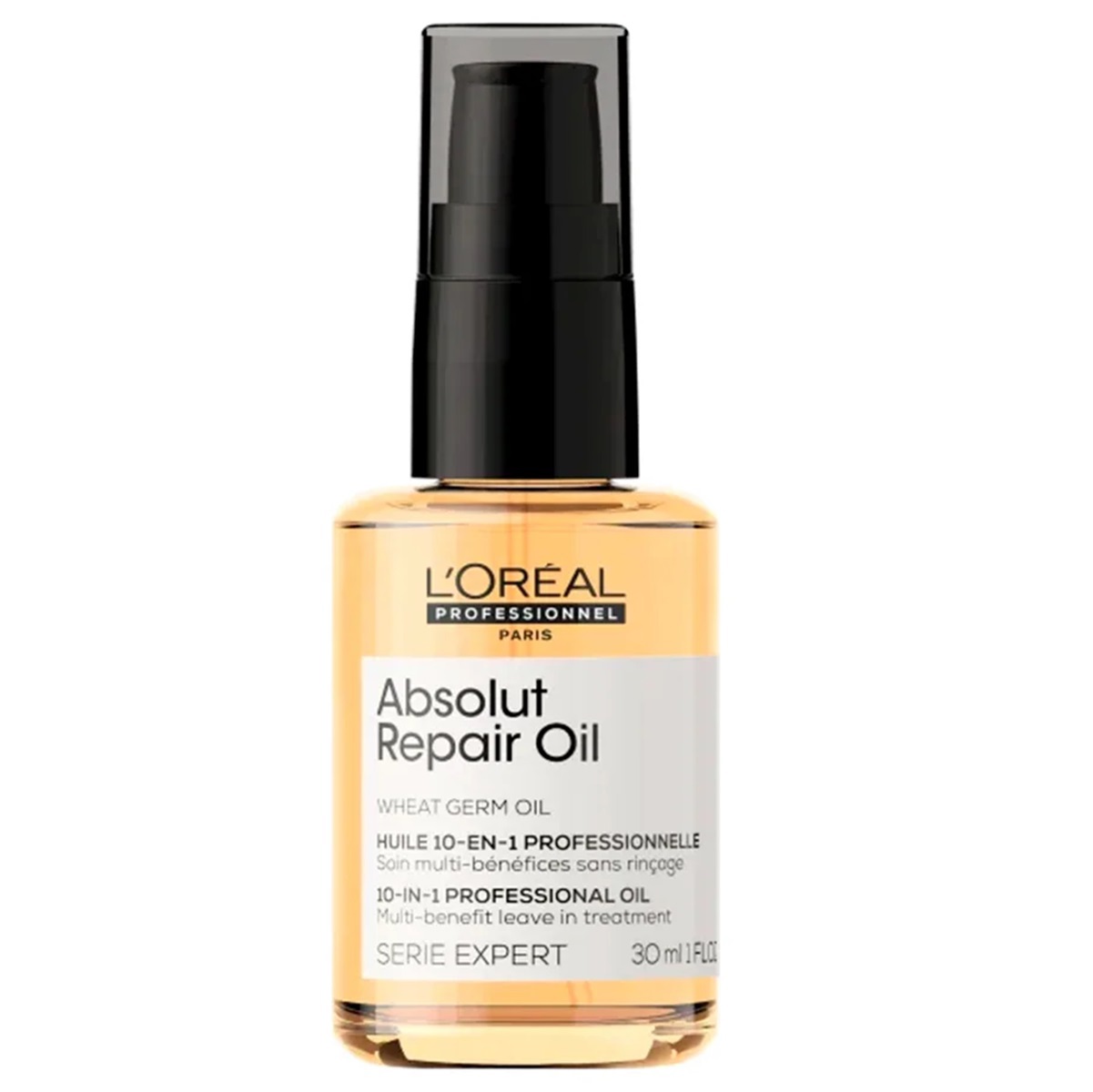 O Óleo Reparador L'Oréal Professionnel Serie Expert Absolut Repair Gold Quinoa 10in1 foi desenvolvido especialmente para cuidar dos cabelos danificados graças aos seus principais ingredientes: Quinoa Dourada e Proteína Hidrolisada de Trigo. Elas criam um filme protetor que mantém as cutículas seladas, retendo as propriedades restauradoras dentro da fibra capilar. Também com tecnologia de co-emulsão, suas moléculas são 50% menores que as tradicionais e isso faz com que os ingredientes ativos penetrem profundamente na fibra, aperfeiçoando a superfície do cabelo.