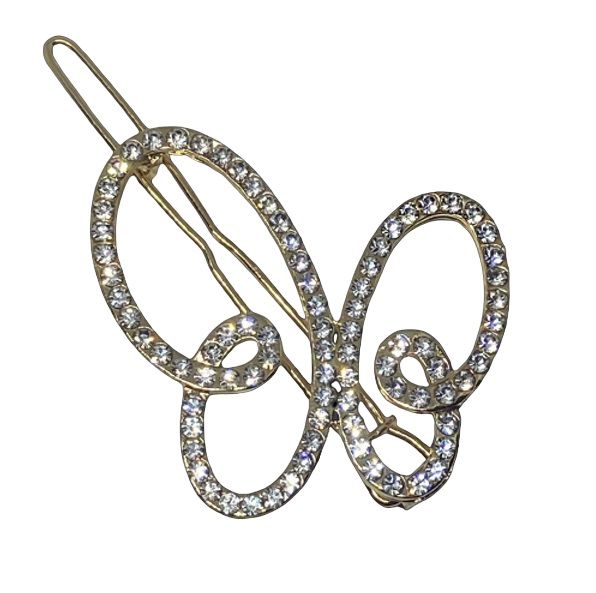 Clip em metal com cristais com banho dourado, medindo 3,8 x 3,8 cm
